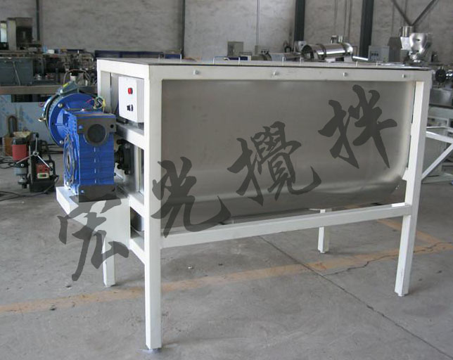 臥式螺帶混合機由U形容器、螺條攪拌葉片和傳動部件組成;螺條狀葉片一般做成雙層或三層,外層螺條將物料從兩側(cè)向中央?yún)R集,內(nèi)層螺條將物料從中央向兩側(cè)輸送,形成對流混合。螺條混合機對于粘性或有凝聚性的粉粒體的混合以及粉粒體中添加液體及糊狀物料的混合有良好的效果,筒蓋可做成全開式門,以便于對設(shè)備進行清洗替換產(chǎn)品。